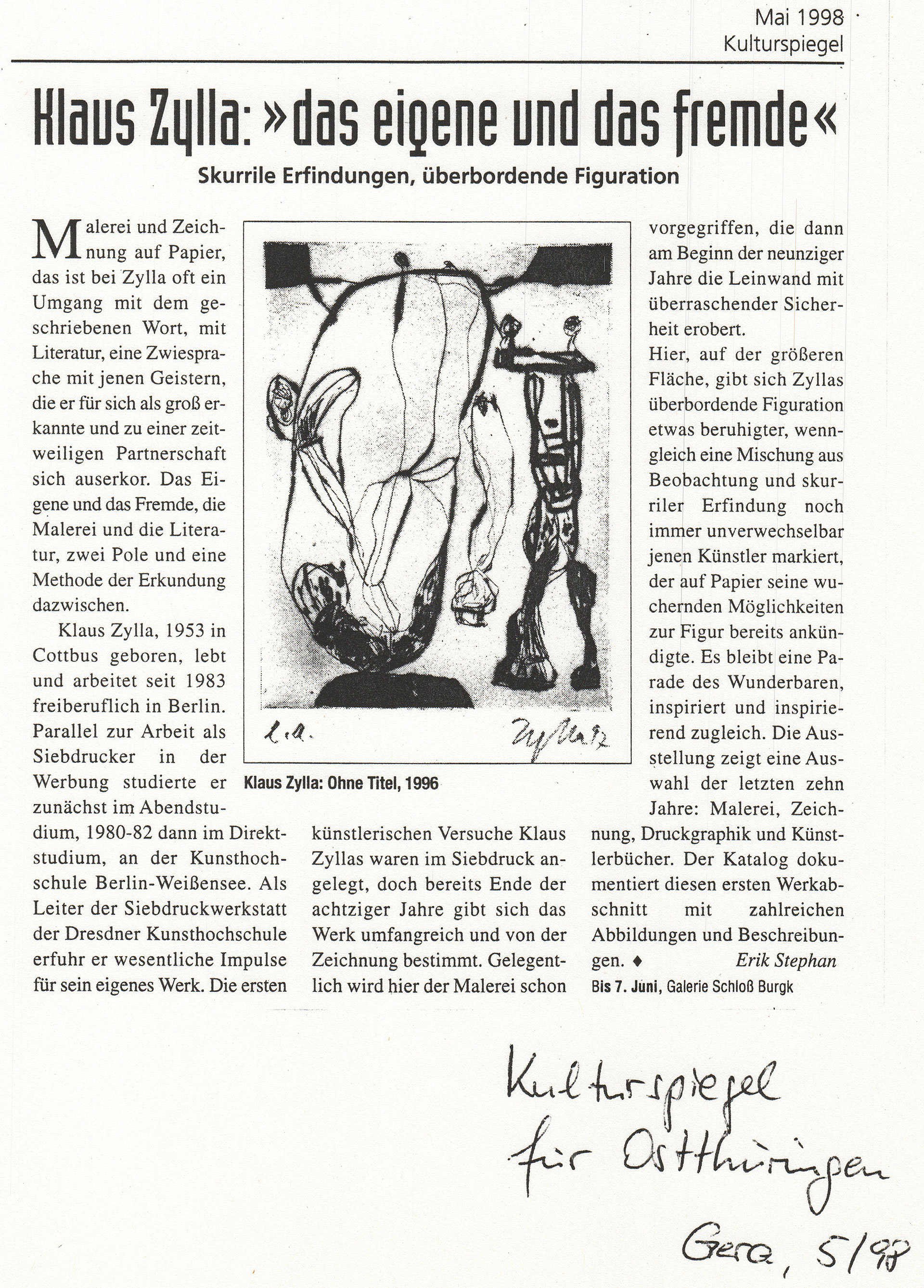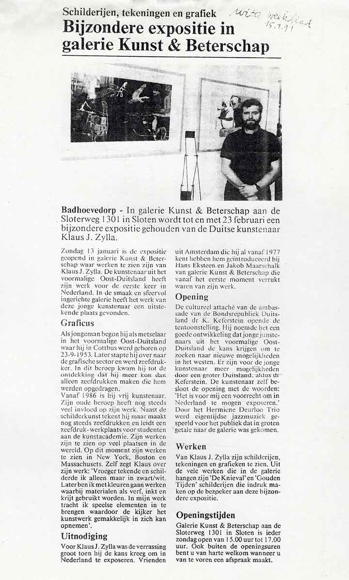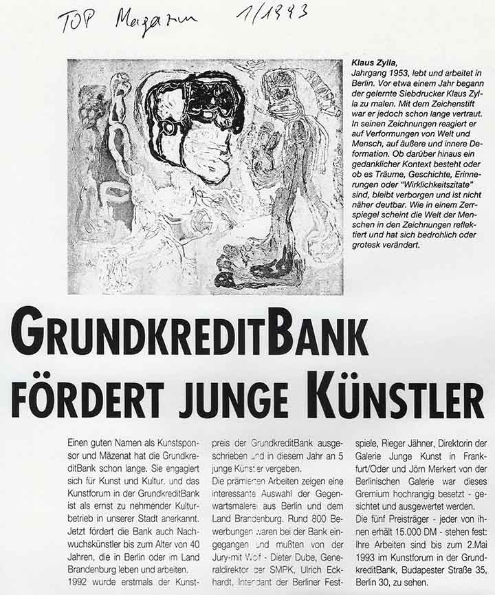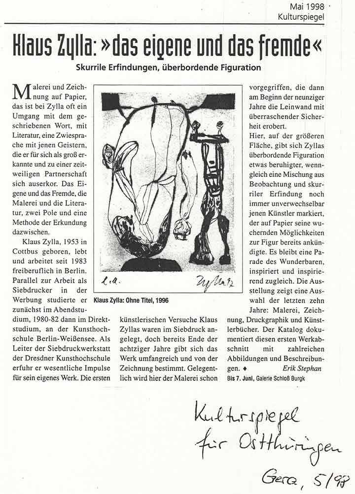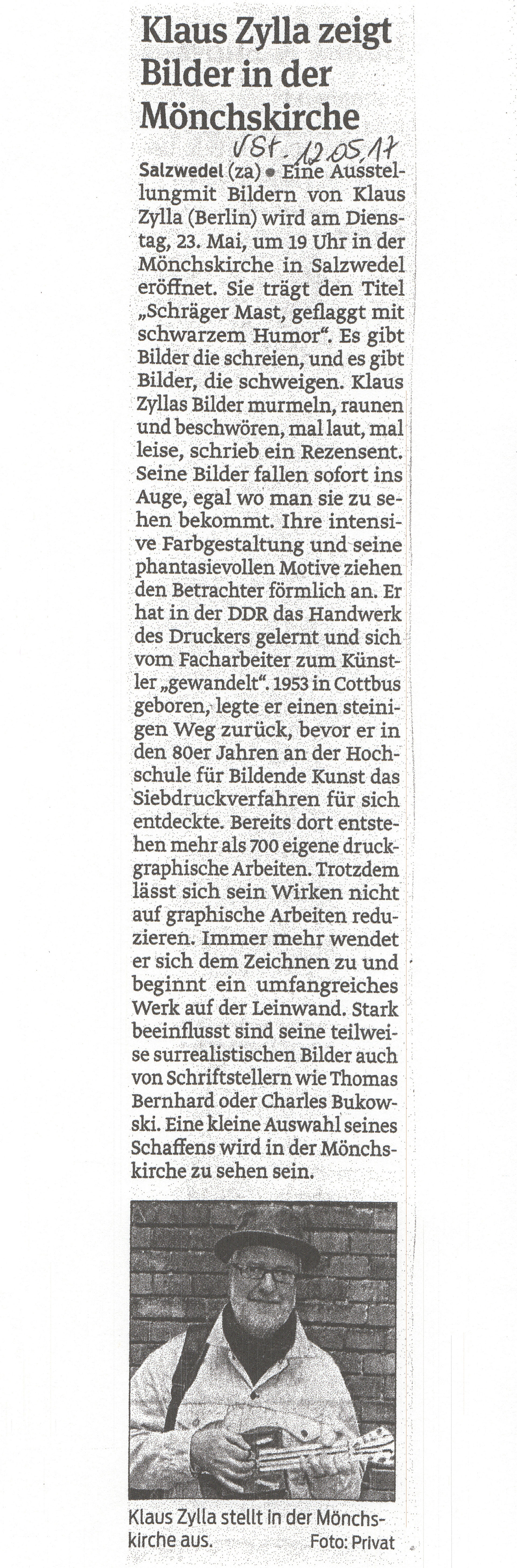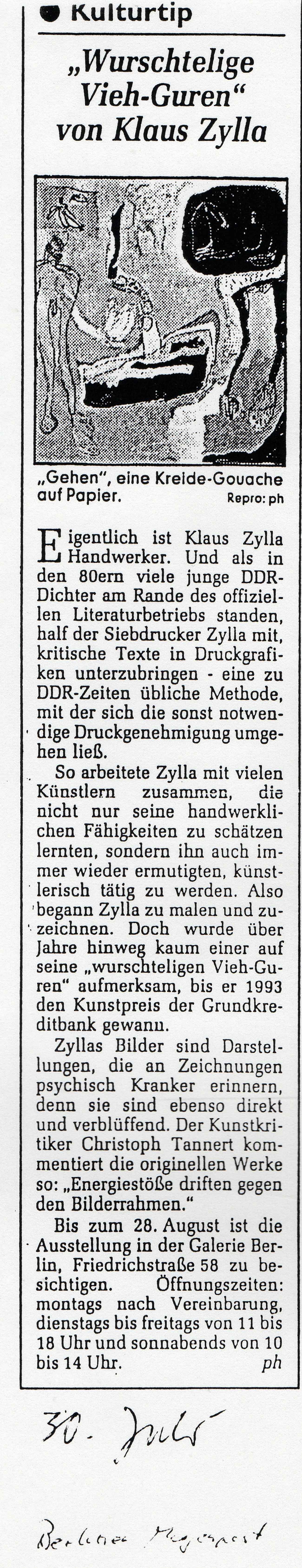 Galerie präsentiert Arbeiten von Klaus Zylla aus 20 Jahren, Berliner Woche