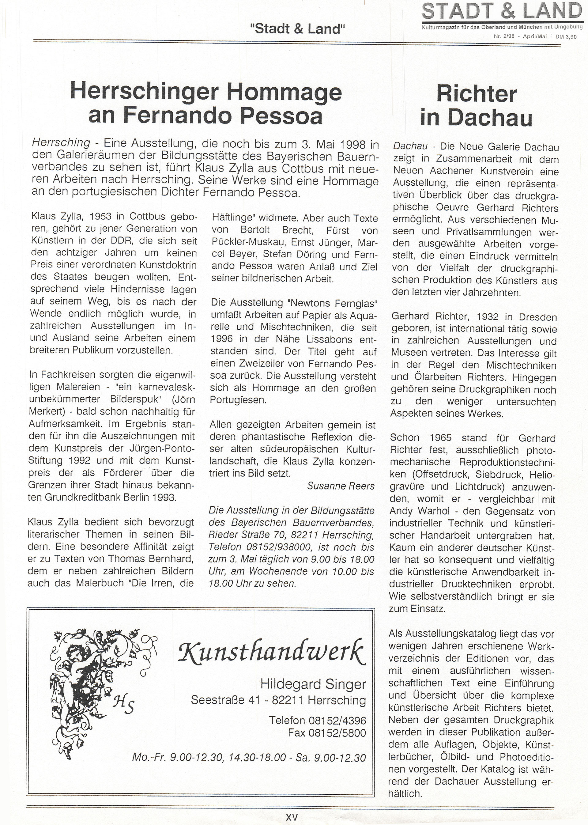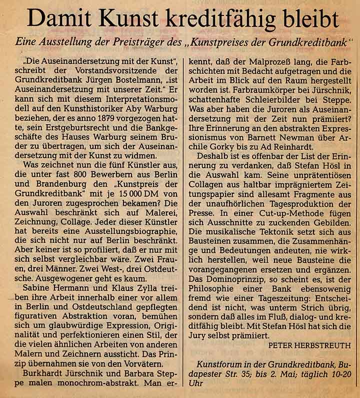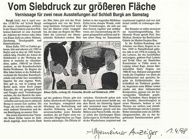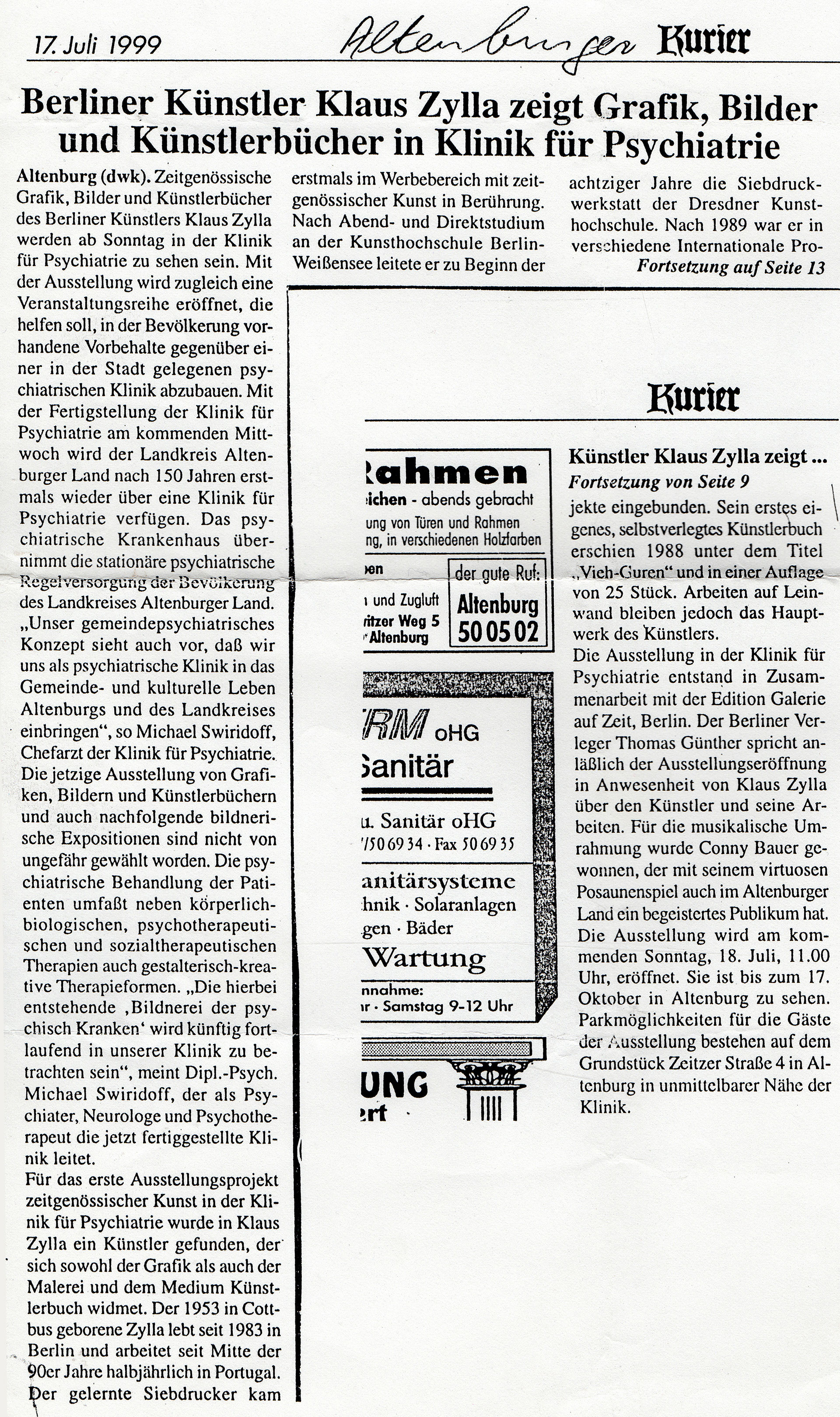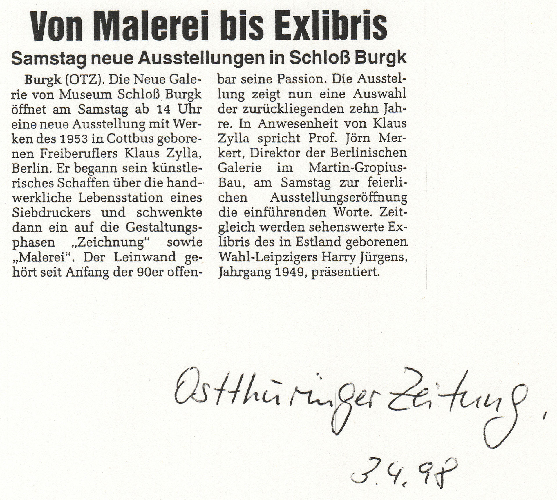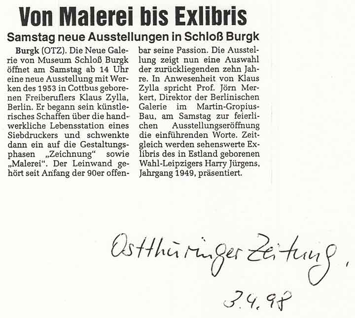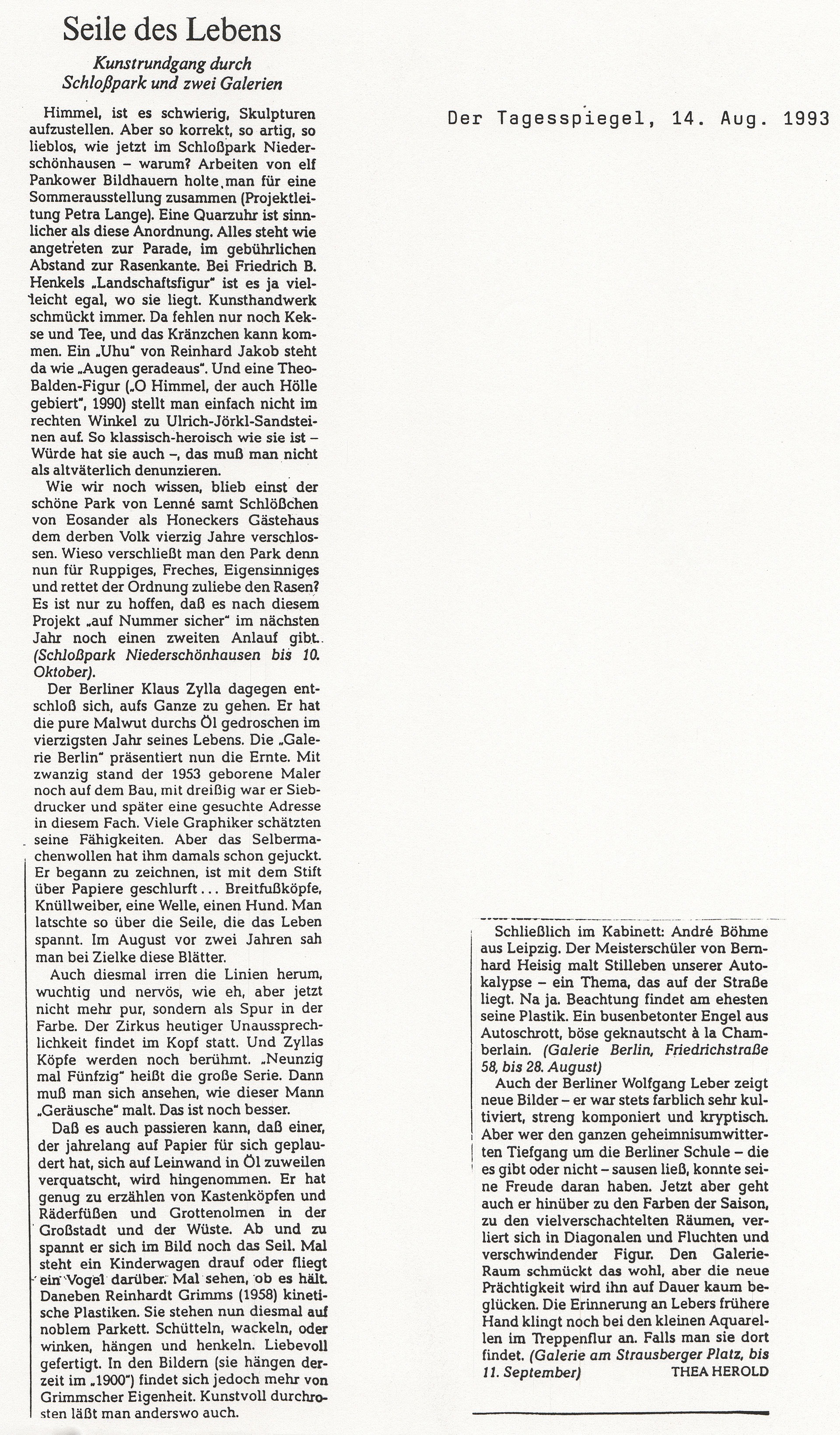Galerie präsentiert Arbeiten von Klaus Zylla aus 20 Jahren, Berliner Woche