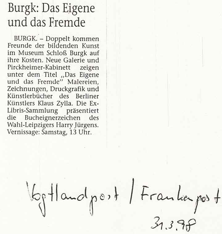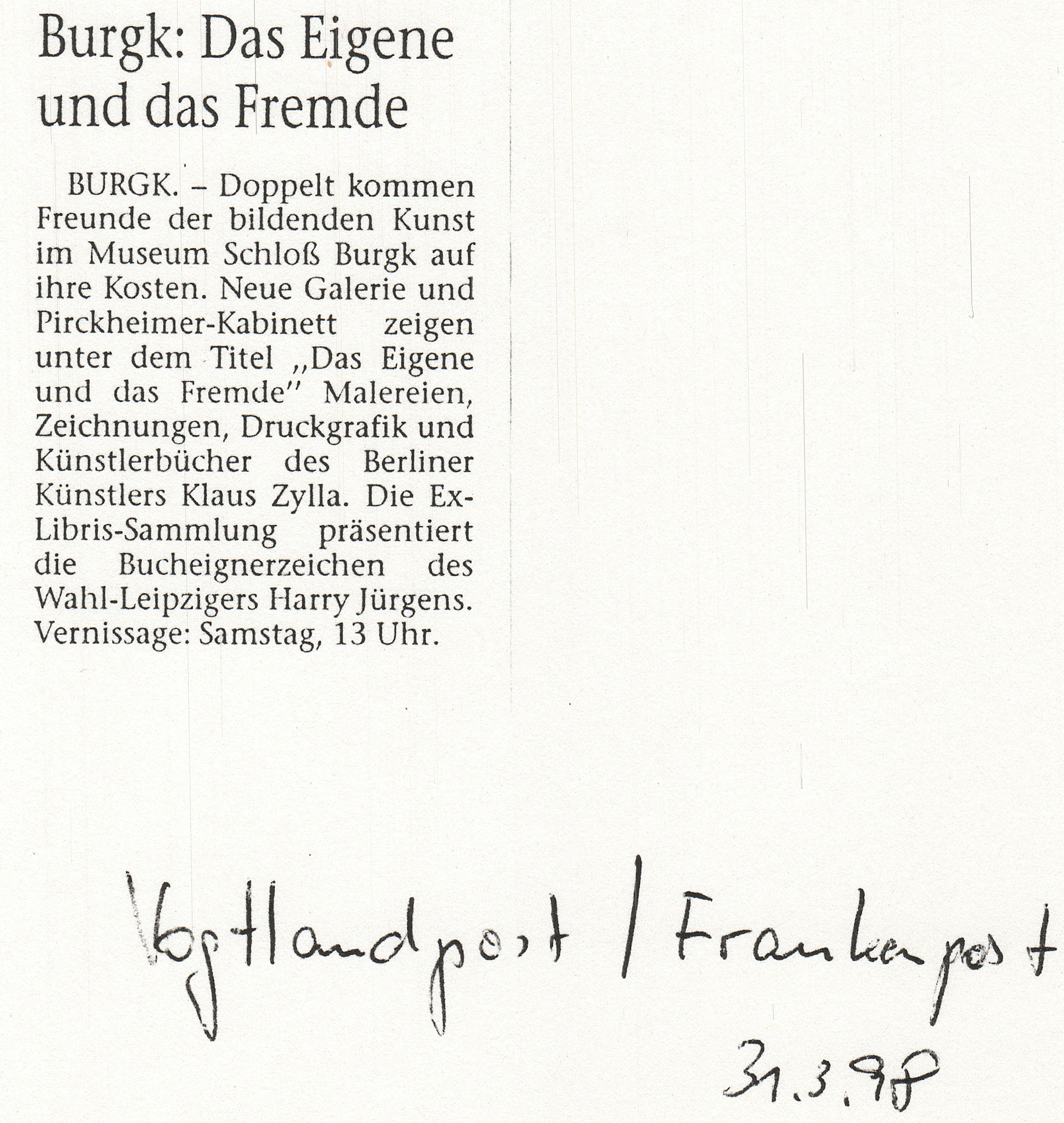 Klaus Zylla Malerei & Grafik, Pirckheimer Gesellschaft