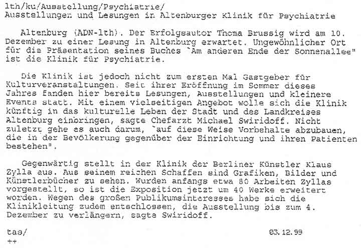 Klaus Zylla Ausstellung in Frankfurt, Openpr